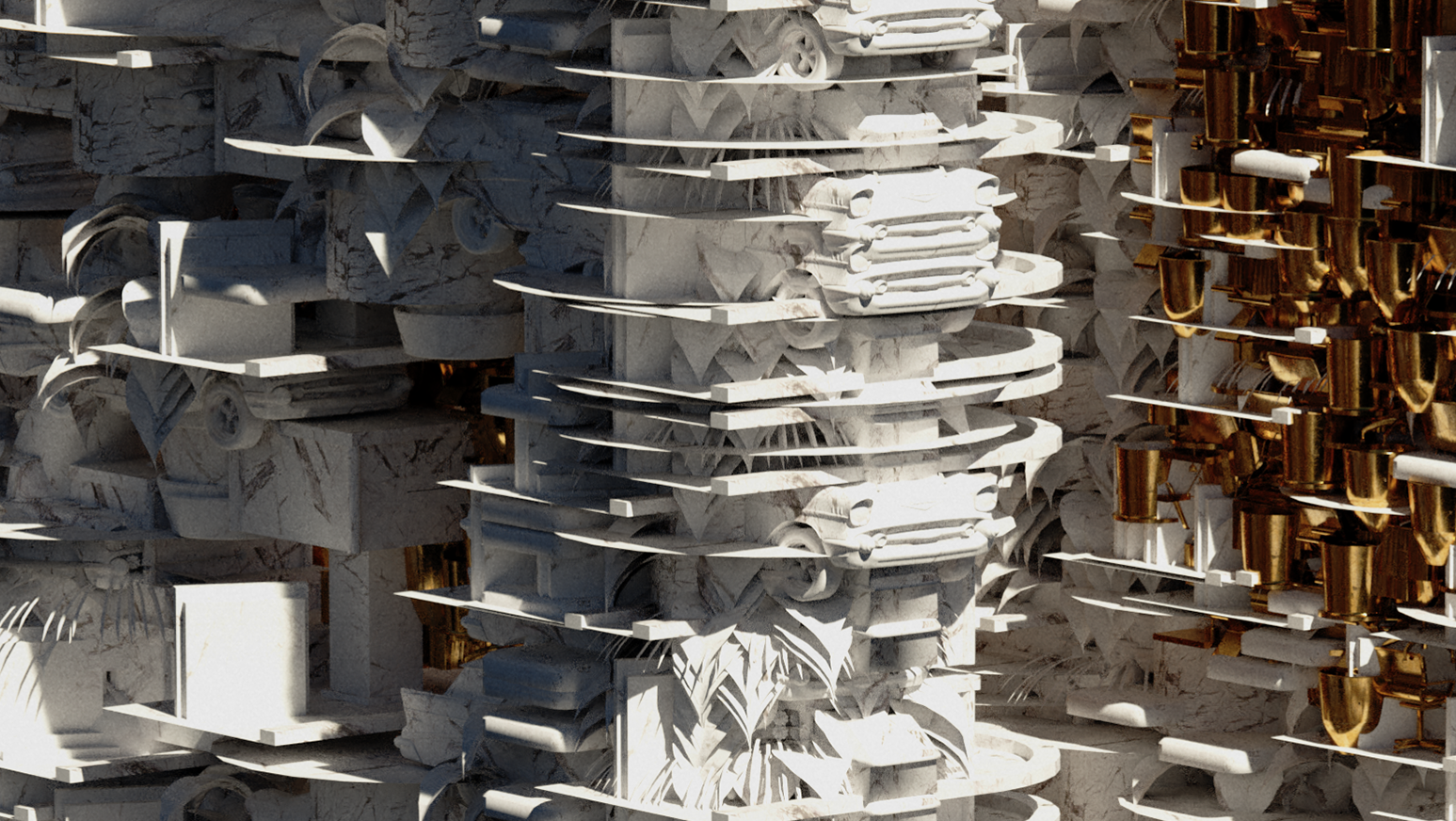 Unabashedly fake, fully electric, and entirely magical; submitted as part of an exhibition to construct an architectural model composed in a 1 m³ volume. The Flowering box is composed of 16 Plexiglas plates each measuring 100cm x 100cm x 0.5cm. The inner plates are spaced 8.5 cm apart and are held together by a sectioned 3d Printed bouquet of Orchids. The Flowering box unfolds as one walks around it; it renders iconic moments, it plays endless patterns, it projects many lives; Pollen and perfume, emojis and honey, ladybugs and Corinthian capitals. Always a whole, never apart, the volume is an approximation; demountable in many ways. The Flowering Box pollutes the world through the many moments it articulates.
