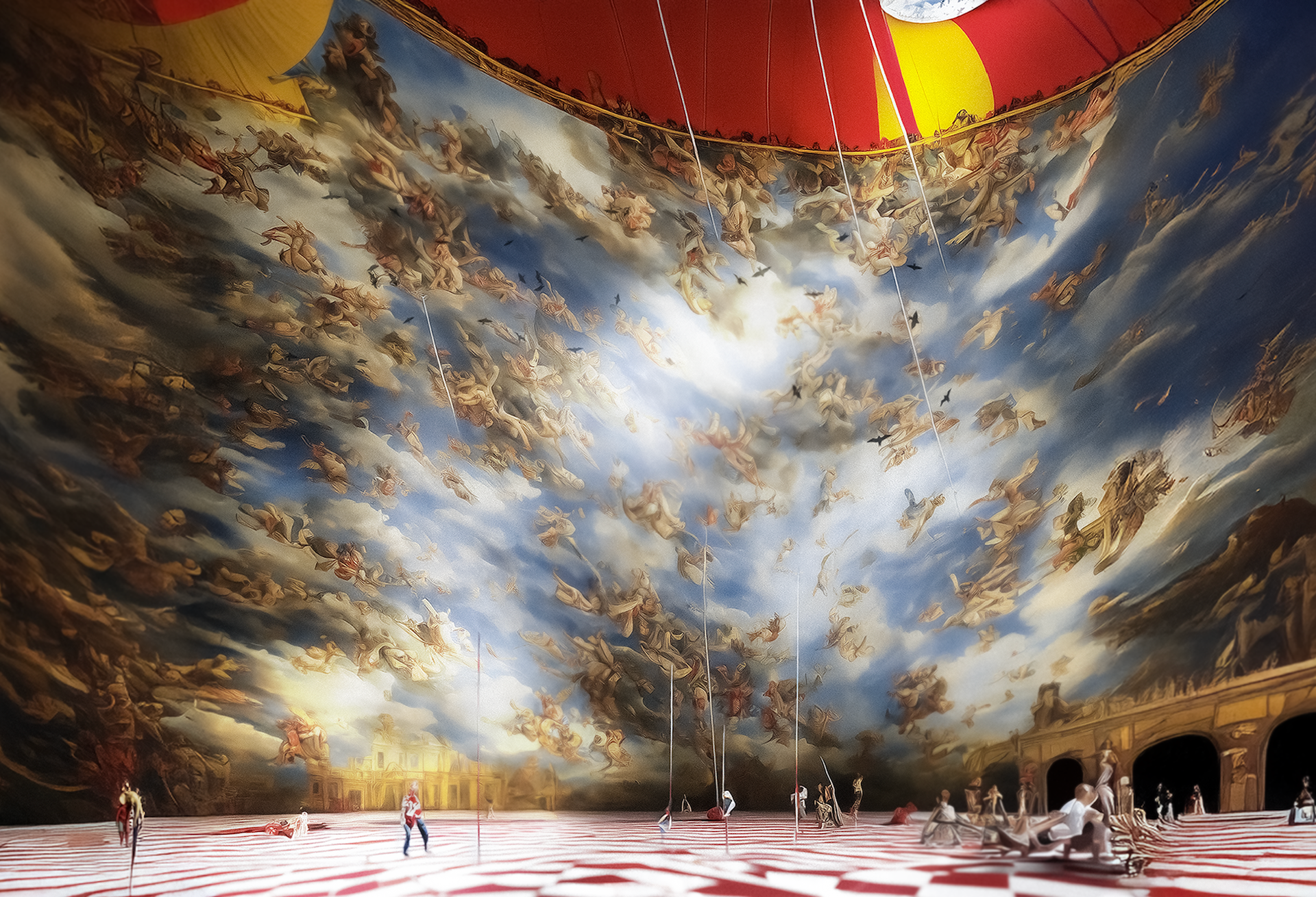 The electric tent vibrates with the energy of a thousand and one stories. Thin scaffolds impossibly balance the monumental construction, and scenes shift at the speed of light. The audience and the performers are both active and affectionate. The Big top, a demountable approximation, shelters them all: digital cogs and gears, mechanical coils and weights. It is located, without being local; it has humour yet it transcends pure amusement; it is firm without having a foundation; it is coherent without being fixed; it has a legacy, but no roots; It thrives in paradoxes.