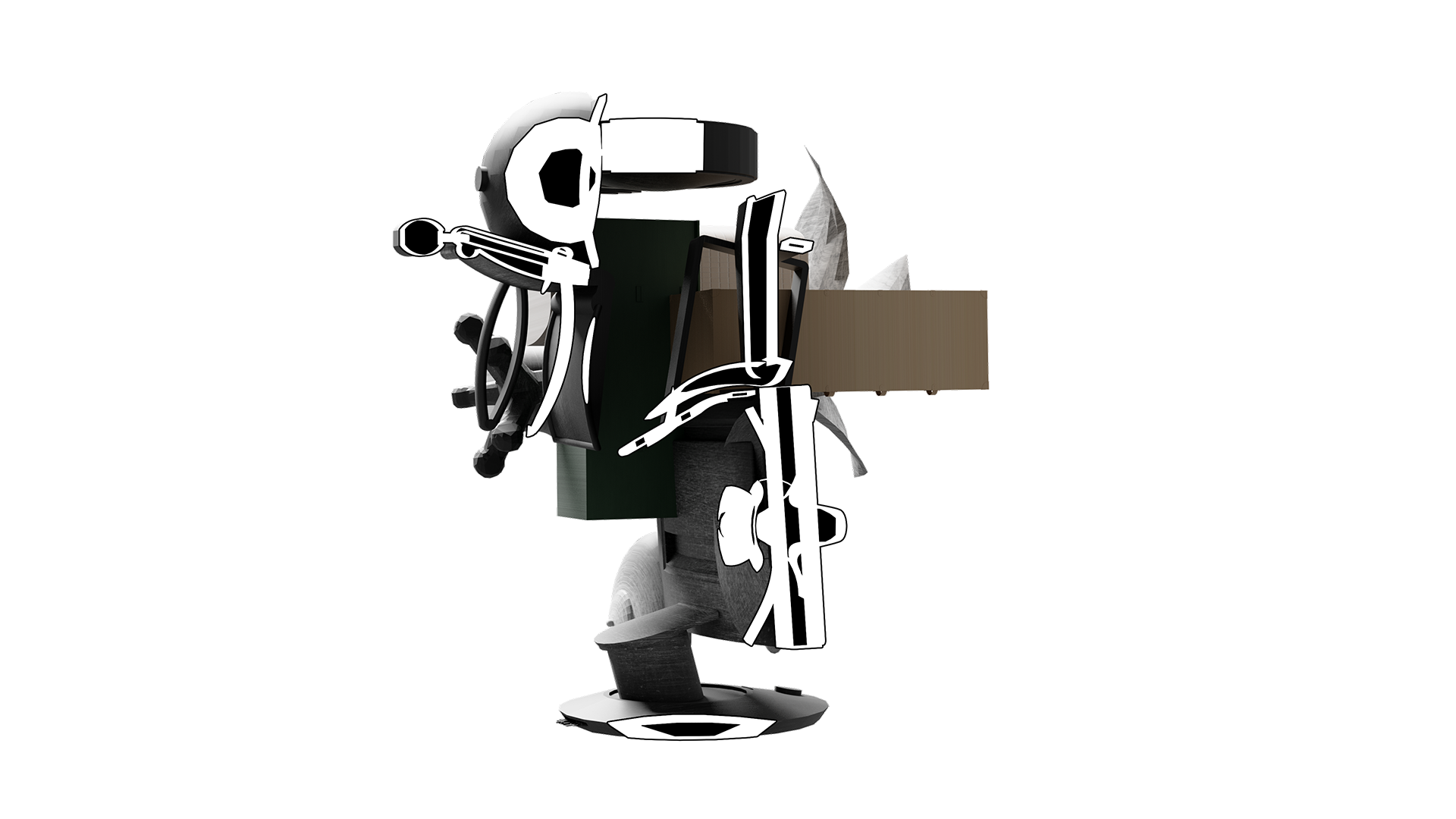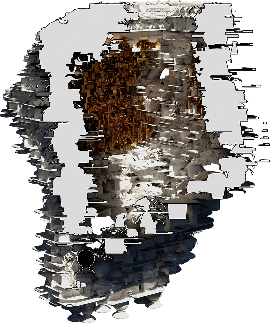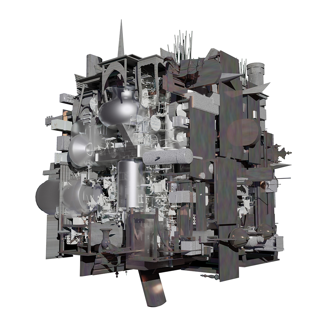 A custom search engine for 52,000 3d models which were then connected to particle systems to produce compositions mimicking architectural drawing conventions. Details, perspectives, sections, elevations were produced by each student exploring part to whole relationships of the compositions.