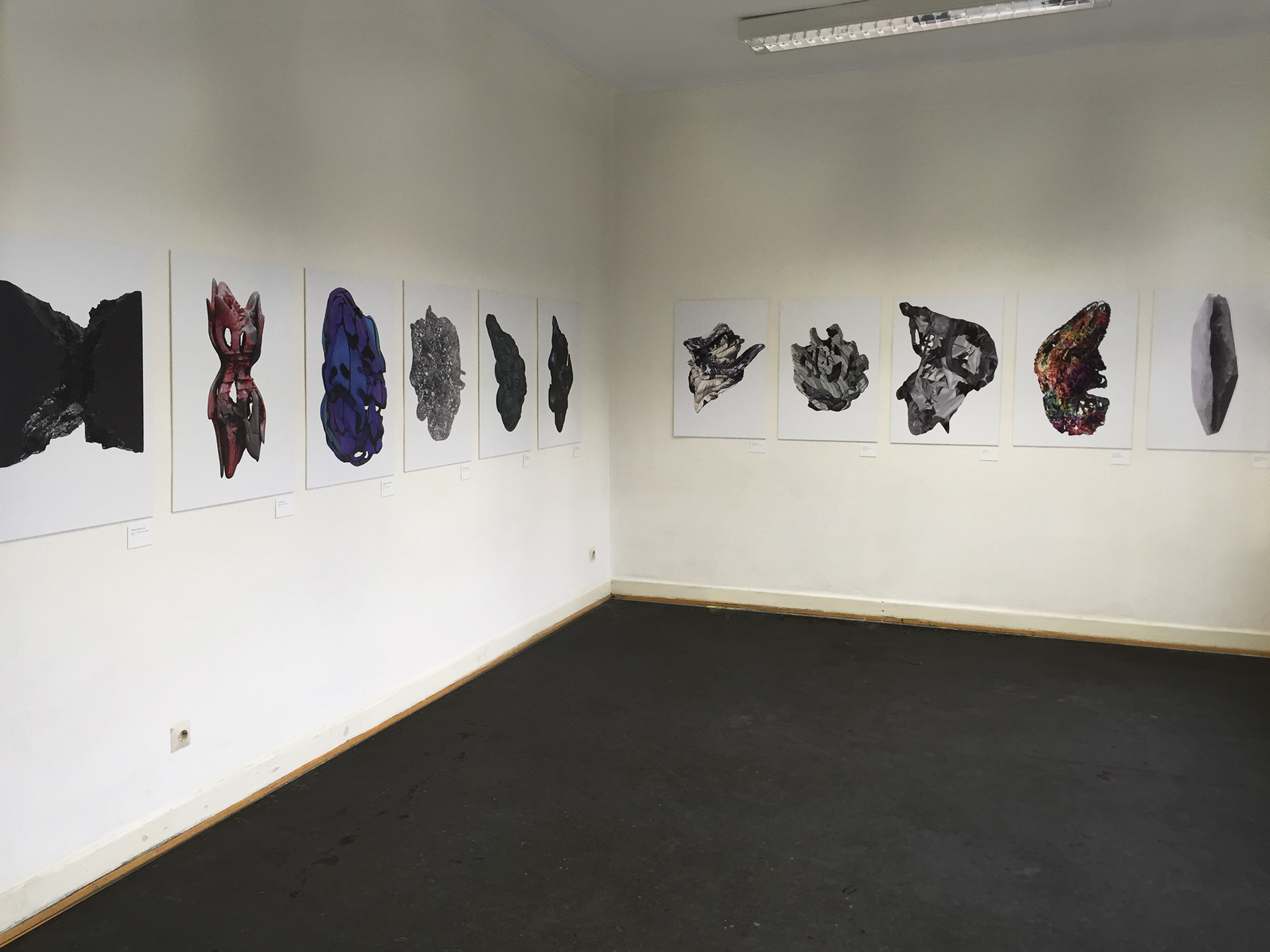 Part of the annual open-house at the Städelschule Architecture Class, an exhibit was designed with the students' works as an archaeology of long-lost or newly discovered objects. Visitors were invited to use torches to investigate the highly detailed, 2d and 3d printed objects.